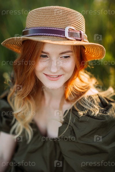 Рыжеволосая девушка среди одуванчиков летом в поле 3630