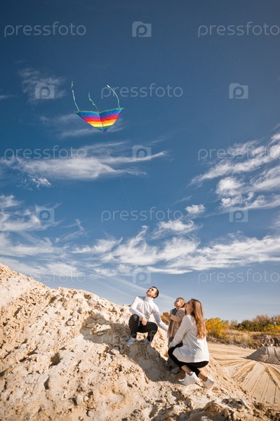 Ребенок играет с воздушным змеем в песке 3330