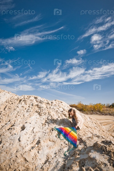 Ребенок играет с воздушным змеем на песке 3331