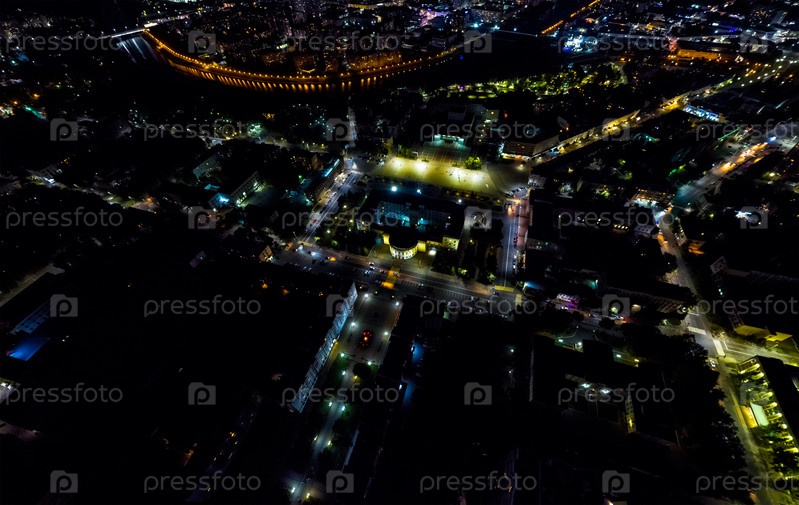 Орел, Россия. Огни ночного города. Ночная панорама центра города. С высоты птичьего полета