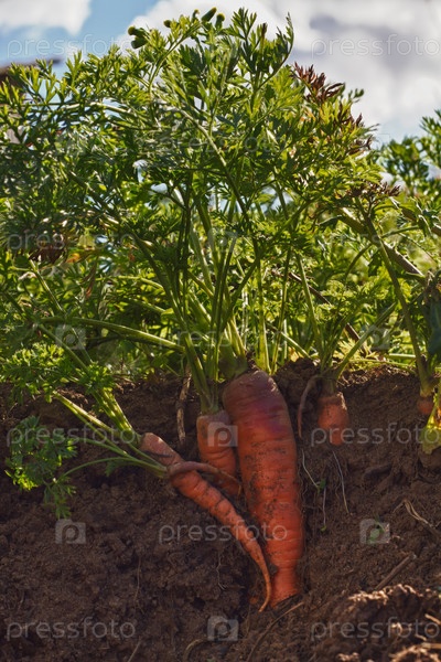 Морковь в земле, на срезе