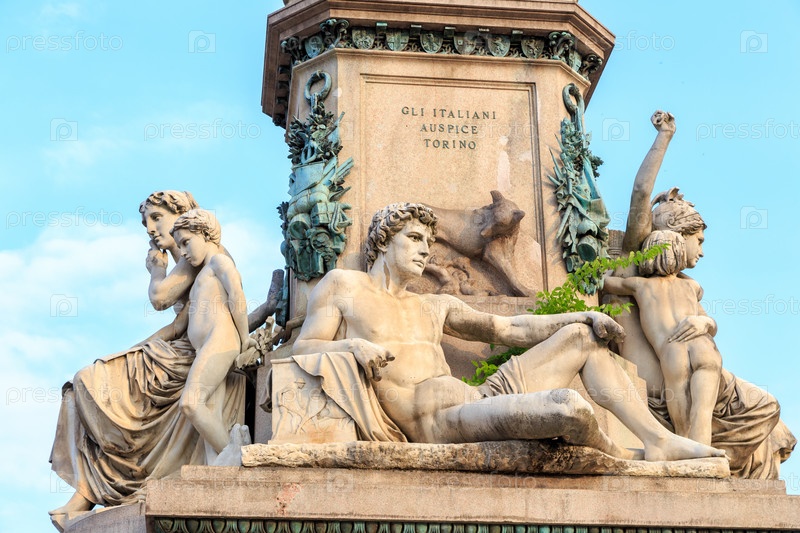 Турин, Италия. Памятник Камилло Бенсо, графу Кавури, премьер-министру итальянского единства. Скульптор Джованни Дюпре (1817-1882) на площади, широко известной среди туринцев как «Карлина»