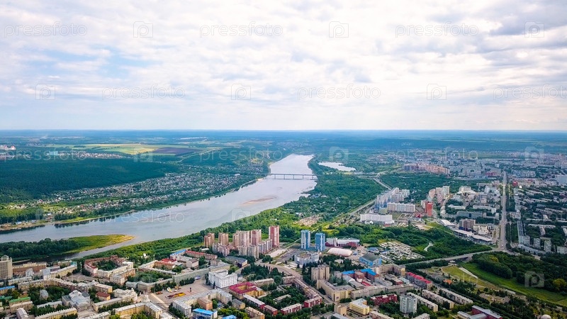 Панорама города с высоты птичьего полета. Кемерово, Россия, Из Дрона