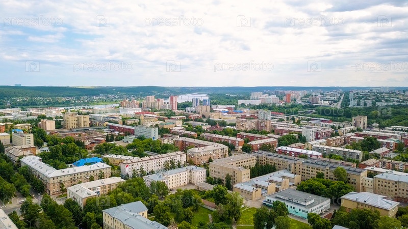 Панорама города с высоты птичьего полета. Кемерово, Россия, Из Дрона