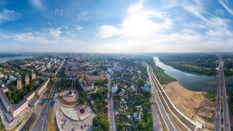 Калуга, Россия. Центральная часть. Панорама города с воздуха. С высоты птичьего полета