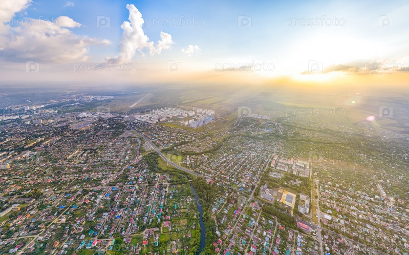 Орел, Россия. Панорама города во время заката Пасмурная погода. С высоты птичьего полета