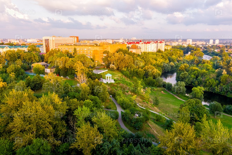 Орел, Россия. Беседка. Ландшафтный парк «Дворянское гнездо». С высоты птичьего полета