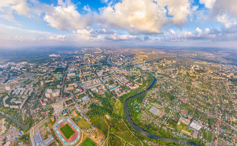 Орел, Россия. Панорама города во время заката Пасмурная погода. С высоты птичьего полета