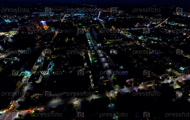 Орел, Россия. Огни ночного города. Ночная панорама центра города. С высоты птичьего полета