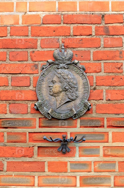 Барельеф российского императора Петра Великого. Калининградский собор. Здесь была надпись в переводе с русского - Император Петр Великий. Россия