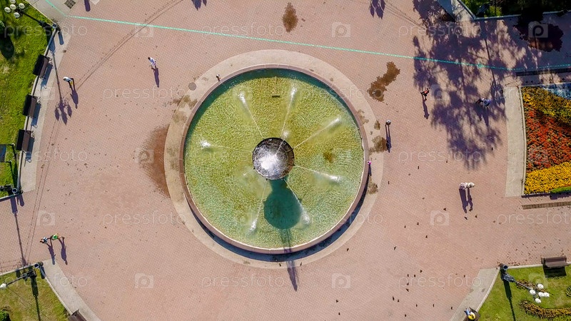 Россия, Иркутск. Площадь имени Кирова. Фонтан, От Дрона, СЪЕМКА ГОЛОВЫ НАД