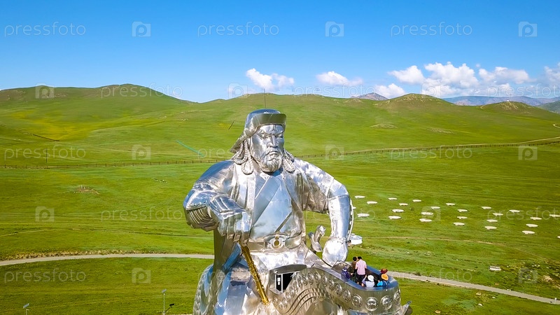 Конная статуя Чингисхана в солнечную погоду. Монголия, Улан-Батор, с дрона