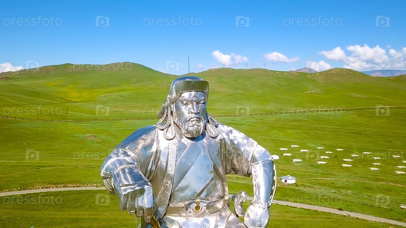 Конная статуя Чингисхана в солнечную погоду. Монголия, Улан-Батор, с дрона