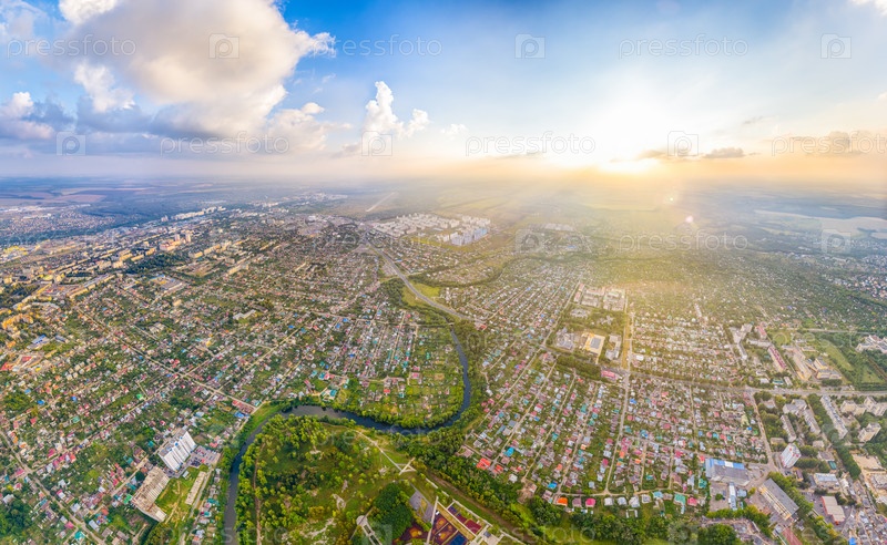 Орел, Россия. Панорама города во время заката Пасмурная погода. С высоты птичьего полета