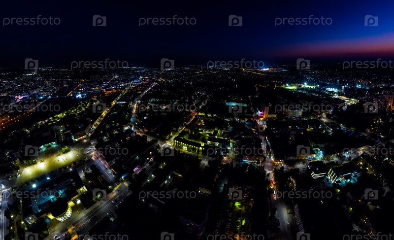 Орел, Россия. Огни ночного города. Ночная панорама центра города. С высоты птичьего полета