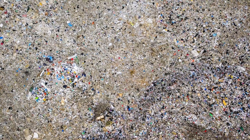 Мусорная свалка в черте города. Вид на город Екатеринбург, Россия, с дрона