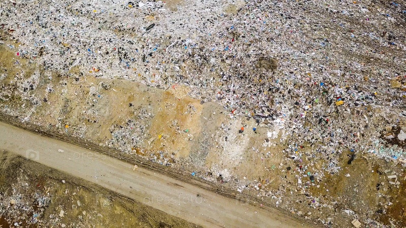 Мусорная свалка в черте города. Вид на город Екатеринбург, Россия, с дрона