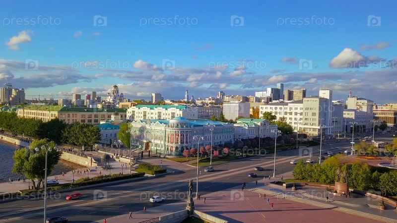 Набережная центрального пруда и Плотинки. Исторический центр города Екатеринбурга. Дом Севостьянова, Россия, Из Дрона