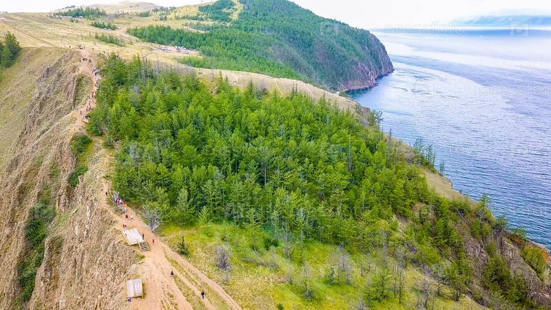 Мыс Хобой (Мыс Хобой).Россия, озеро Байкал, остров Ольхон.Самая северная точка острова Ольхон, From Drone