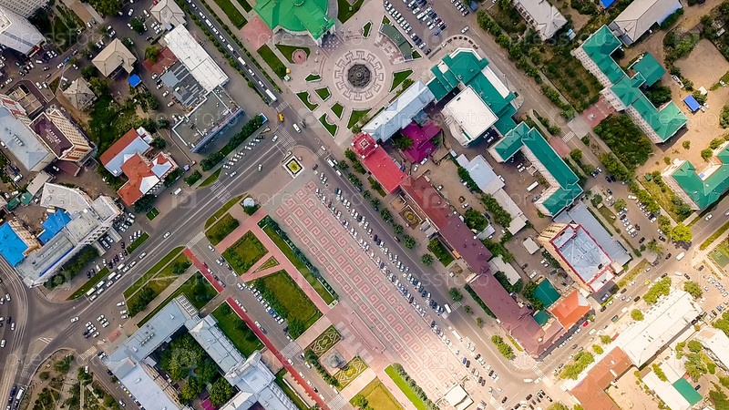 Россия, Улан-Удэ. Театральная площадь имени Лхасарана Линховоина, С дрона, СЪЕМКА ГОЛОВЫ
