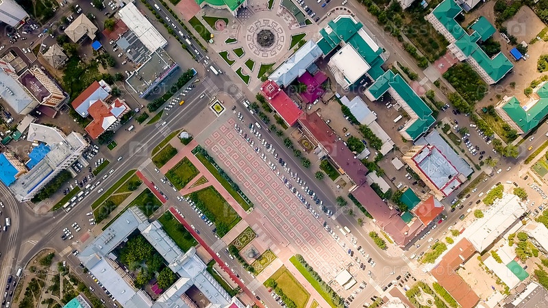 Россия, Улан-Удэ. Театральная площадь имени Лхасарана Линховоина, С дрона, СЪЕМКА ГОЛОВЫ