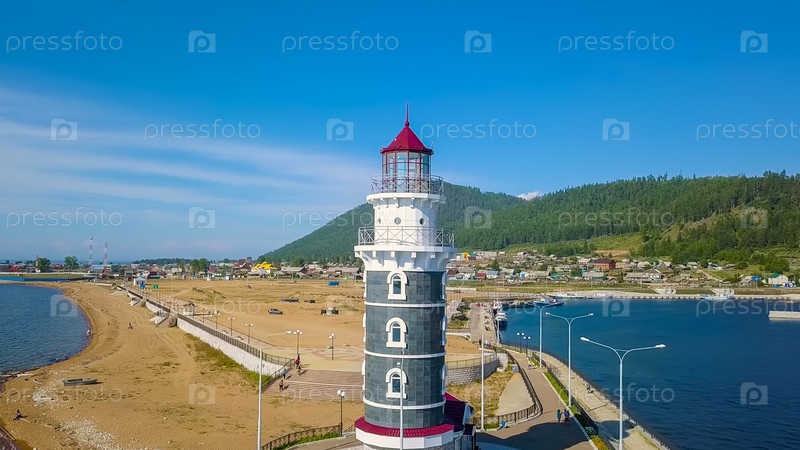 Россия, озеро Байкал. Маяк на берегу озера. Устье реки Турка, От Дрона