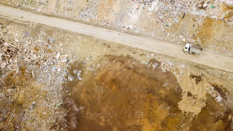 Мусорная свалка в черте города. Вид на город Екатеринбург, Россия, с дрона