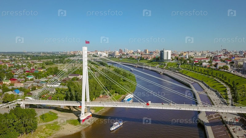 Город Тюмень, Набережная реки Туры, Мост Влюбленных. Россия, Тюмень, Из Дрон