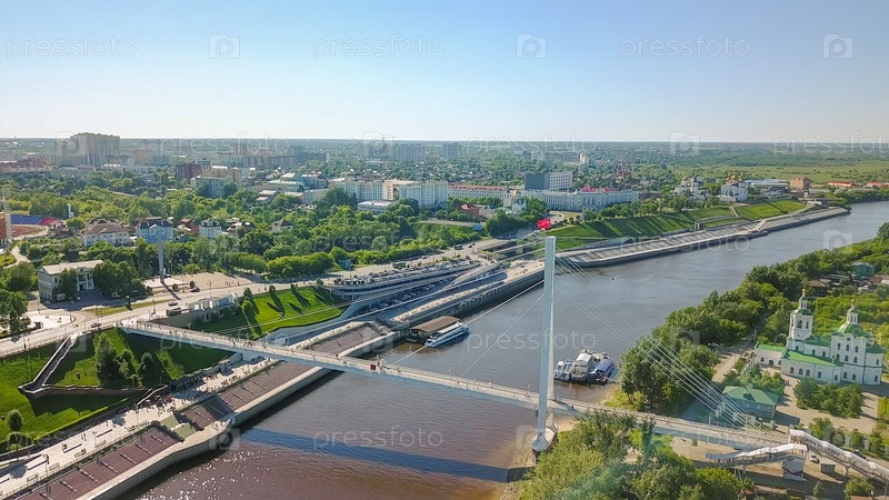 Город Тюмень, Набережная реки Туры, Мост Влюбленных. Россия, Тюмень, Из Дрон