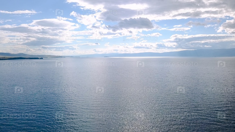 Полет над землей и водой. Россия, Байкал, залив Малое Море. Остров Харанцы. Рядом с островом Ольхон, с дрона