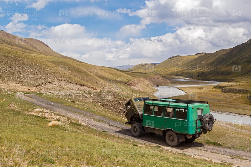 Сломанный грузовик на горной дороге. Азия, Кыргызстан, Тянь-Шань