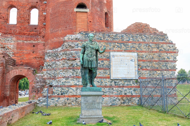 Турин, Италия Одна из двух статуй с изображением Гая Юлия Цезаря Палатинские ворота (итал