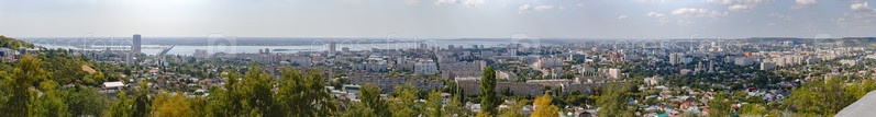 Большая панорама города Саратова. Вид на Волгу, мост. Россия, Саратов