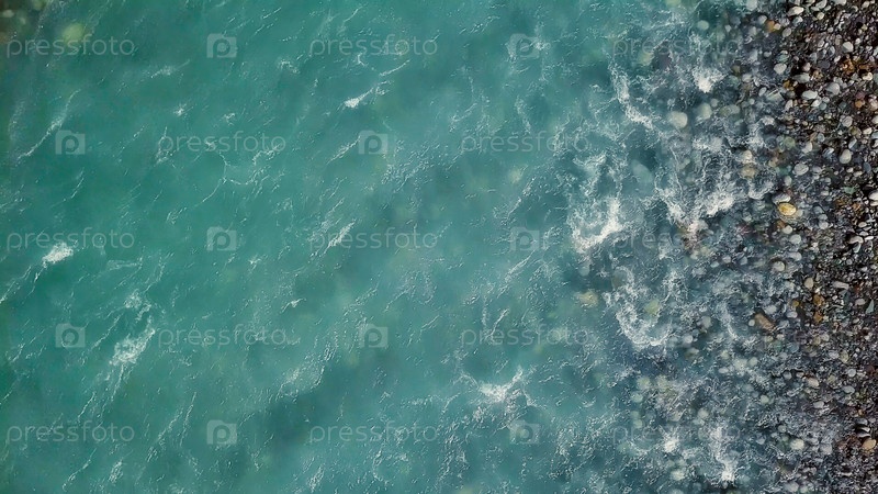 Полет над рекой Теберда в горах Кавказа. Карачаево-Черкесская Республика, Россия