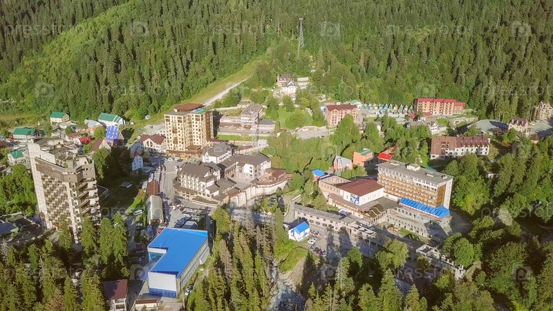 Горная деревня. Полет в горах. Домбайская Поляна, Карачаево-Черкесия, Северный Кавказ. Россия