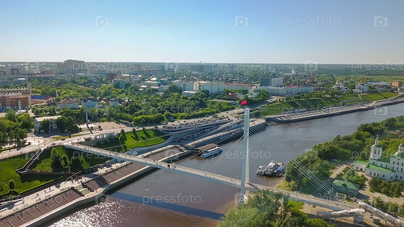 Город Тюмень, Набережная реки Туры, Мост Влюбленных. Россия, Тюмень, Из Дрон