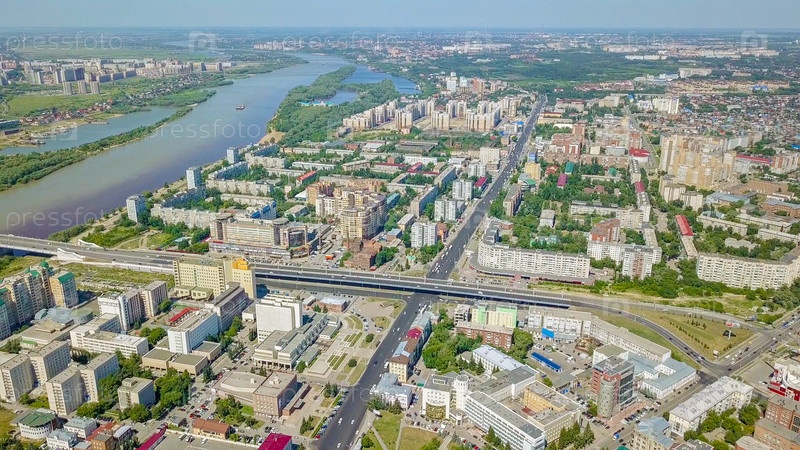 Панорамный вид на город Омск, Россия, с дрона