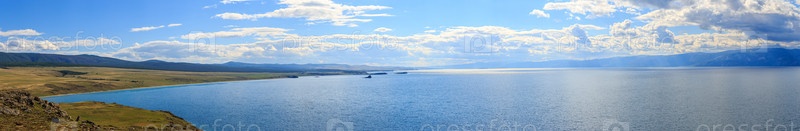 Панорамный вид на небольшой морской залив. Вид с острова Ольхон. Россия