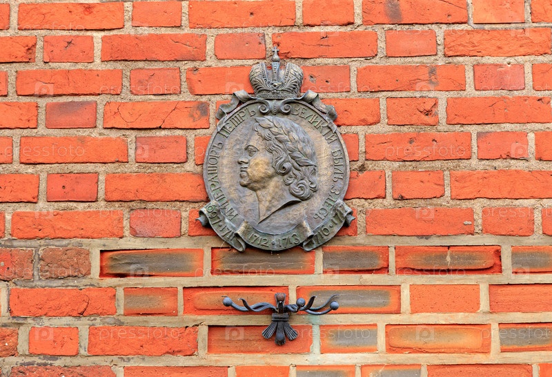 Барельеф российского императора Петра Великого. Калининградский собор. Здесь была надпись в переводе с русского - Император Петр Великий. Россия