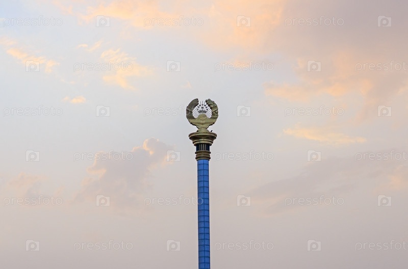 Герб Таджикистана на стеле. Душанбе