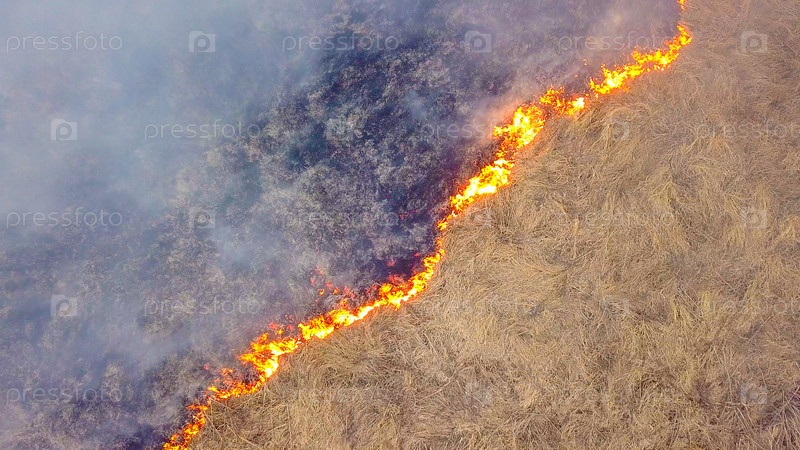 Большой пожар. Горит сухая трава. много дыма. Екатеринбург, Россия, С Дрона, СЪЕМКА ГОЛОВЫ НАД