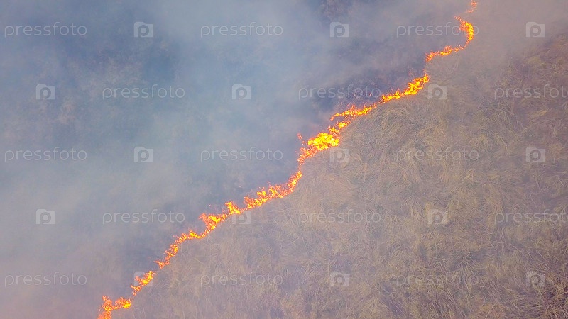 Большой пожар. Горит сухая трава. много дыма. Екатеринбург, Россия, С Дрона, СЪЕМКА ГОЛОВЫ НАД