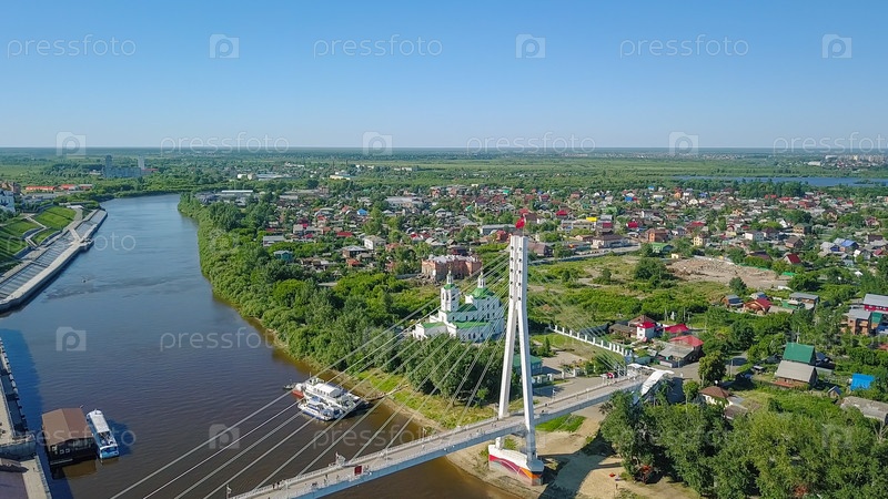 Город Тюмень, Набережная реки Туры, Мост Влюбленных. Россия, Тюмень, Из Дрон