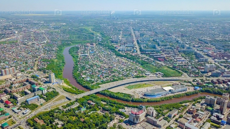 Панорамный вид на город Омск, Россия, с дрона