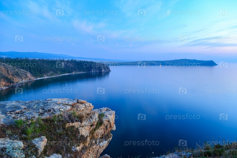 Россия, озеро Байкал, остров Ольхон, залив Малое море. Мыс Улан-Хушун. Вид с мыса Нюрган. Переход от заката к ночи