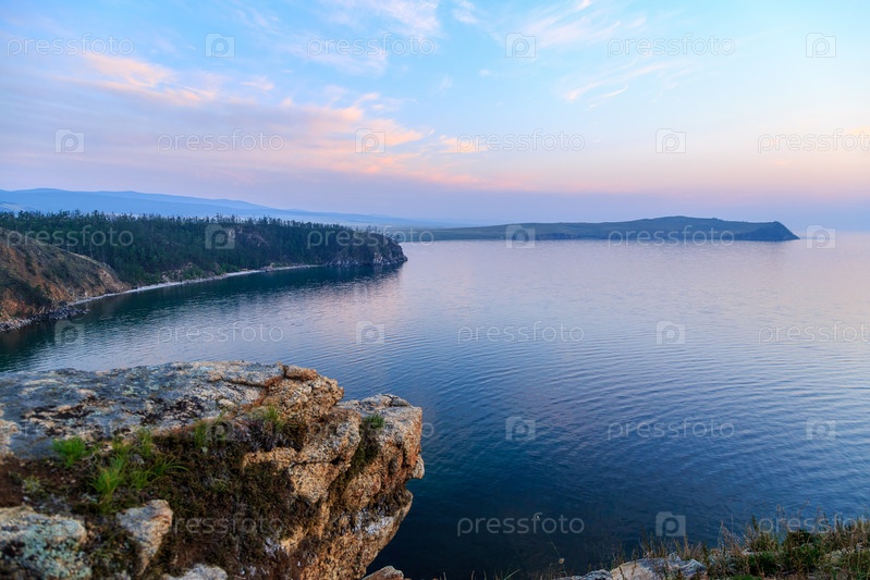 Россия, озеро Байкал, остров Ольхон, залив Малое море. Мыс Улан-Хушун. Вид с мыса Нюрган. Переход от заката к ночи