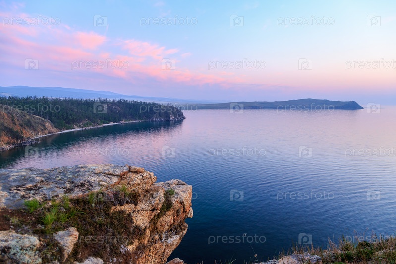 Россия, озеро Байкал, остров Ольхон, залив Малое море. Мыс Улан-Хушун. Вид с мыса Нюрган. Переход от заката к ночи