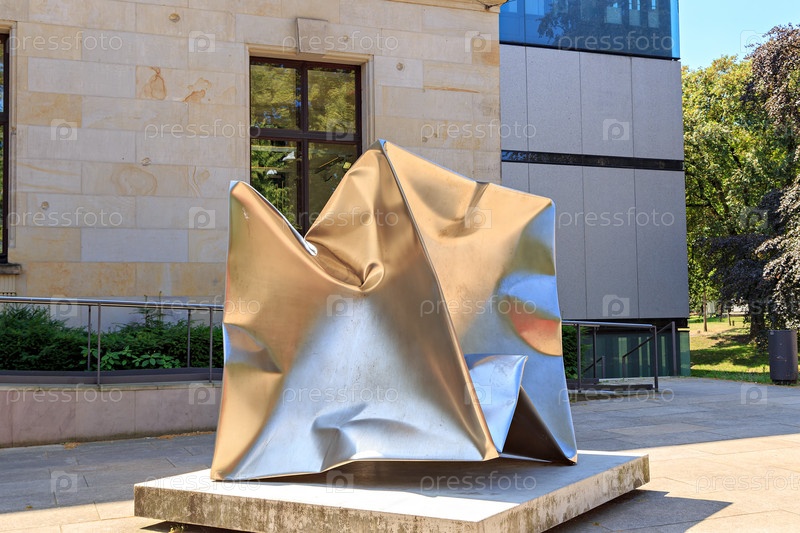 Бремен, Германия - 28 июня 2019 г.: Установка металлического куба, раздавленного давлением, возле Бременской художественной галереи