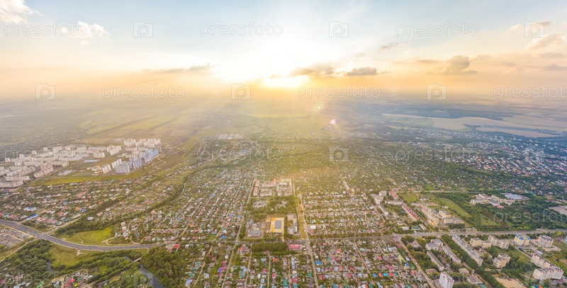 Орел, Россия. Панорама города во время заката Пасмурная погода. С высоты птичьего полета