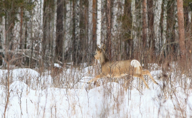 Фотоохота на оленя (Capreolus).Зимний лес